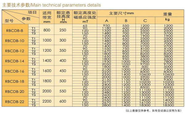 用途在甲烷爆炸性气体的场所与带式输送机配合使用,适合带速高、料层厚、环境恶劣的带式输送机上除铁。特点·优化的磁路设计,磁势大,吸力强,除铁率高。·专用树脂浇注,机械和电气性能稳定。·自冷式外壳,双线圈设计,散热快,重量轻。·全封闭,全填充,防潮,防尘,耐腐蚀。·整流控制设备具备智能型保护,设有就地控制和远方控制功能。·选配RS-485通信接口,可实现程序自动化控制。